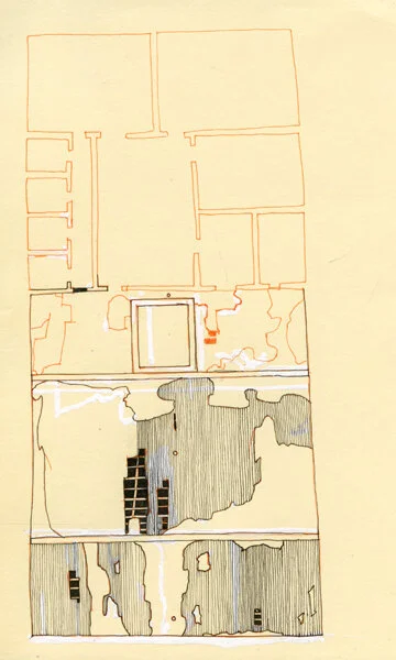 “In the project "Aerial Schematic" I drew the ceilings at Elsewhere. I have been referring to these drawings as maps, which they are in a fairly loose way.”
