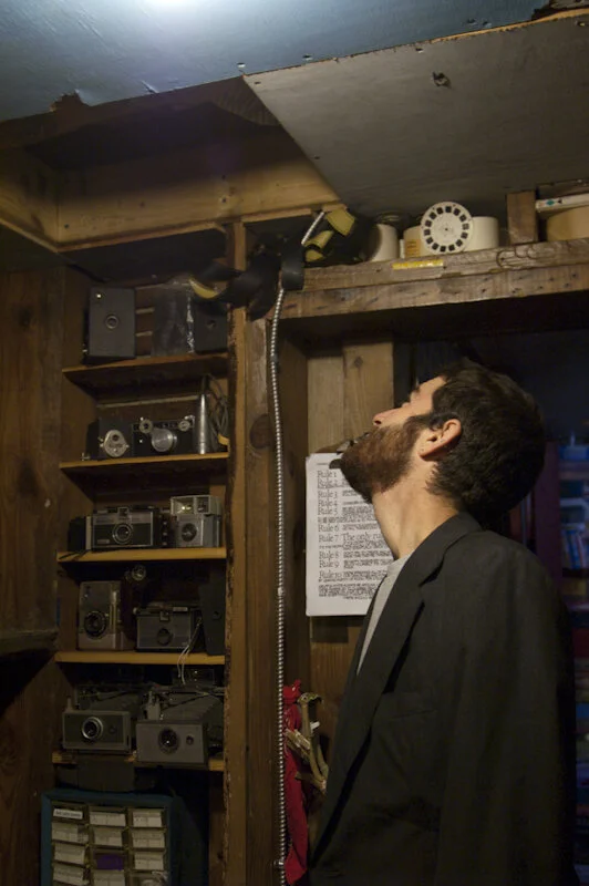 Miles set out to spend 24 hours in the dark and 12 hours in the daylight, he started out in a crawl space under the stairs in the tech lab, and then spent the next day outside until dusk. this experiment was inspired by the book. subsequently he made a zine about his experience during this time.
