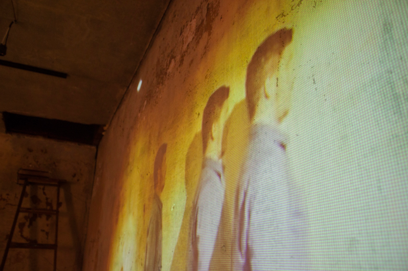 The accompanying video shows Ferris multiplying his image to mimic soldiers marching in a line, and implicates the artist himself as a complicit subject.