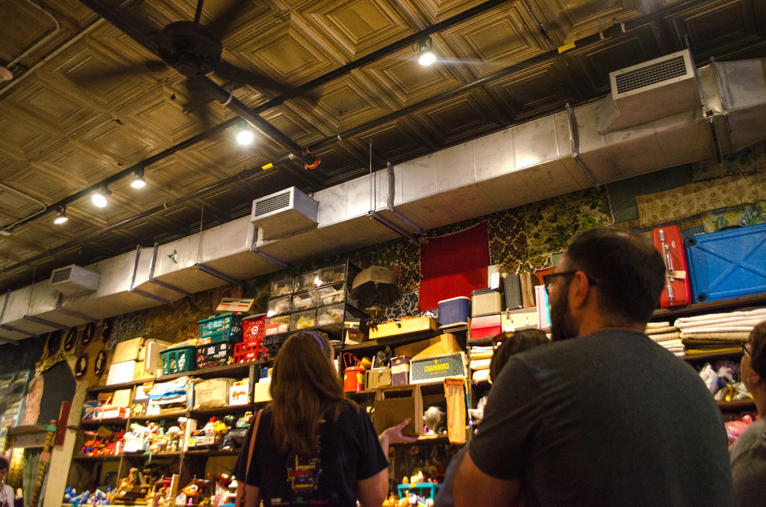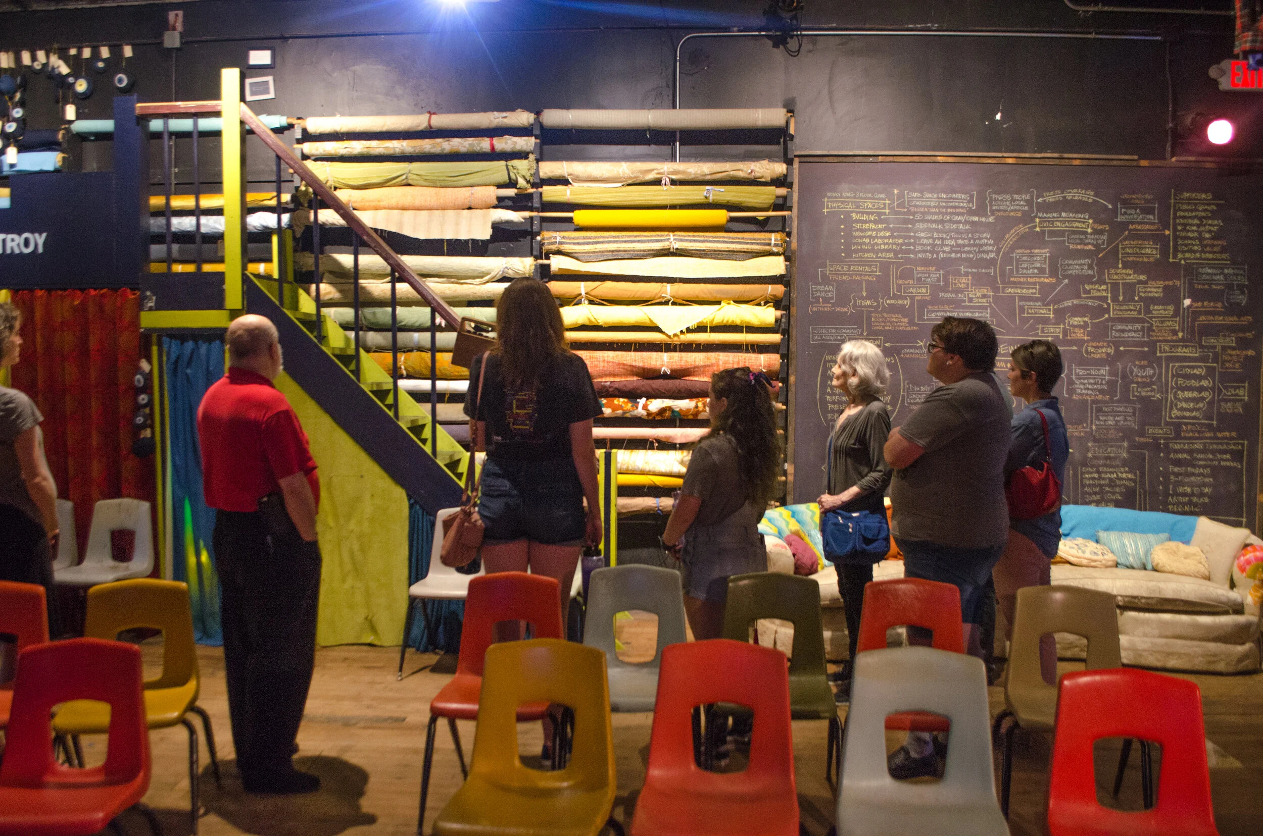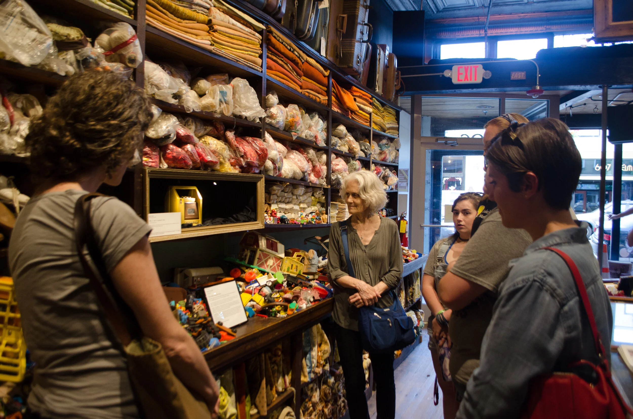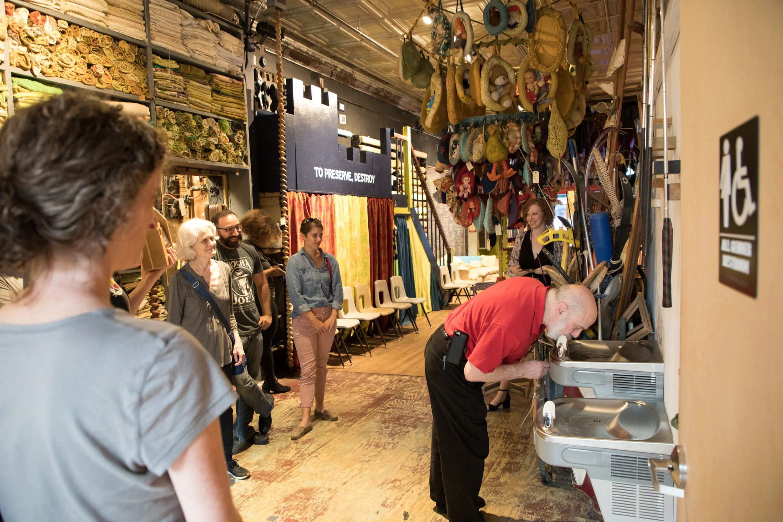 By asking visitors to playfully accept the guidance of an inanimate object, Snyder’s work opens the door to new ways of engaging with Elsewhere’s space and collections. Lines are intentionally blurred between audience and performer, object and person, art and not art. Themes explored through this piece include layering of collections, memories, and time; shared storytelling; and personification of objects.