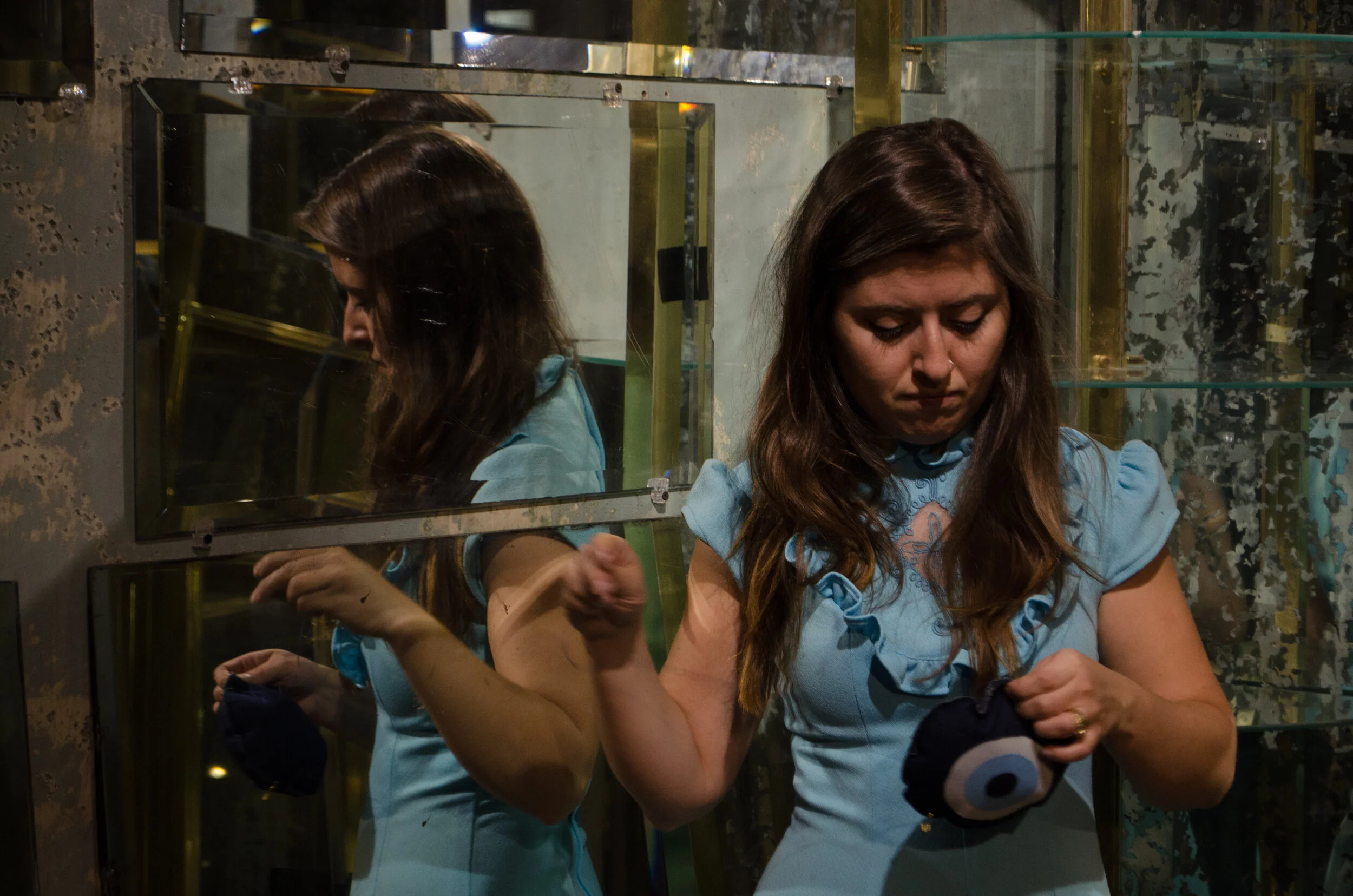 Through the fabrication of over +130 soft sculpture talismans, Ekinci stitches together symbols of protection: the Southern use of “haint blue” paint and the Middle Eastern “evil eye” amulet. Participants are invited to pick an evil eye and place it in a chosen space or on an object in the museum that needs protection, with a written note explaining their choice. Your Haint Blue is My Evil Eye prompts protection of the most fragile parts of the museum while archiving personal relationships with things.